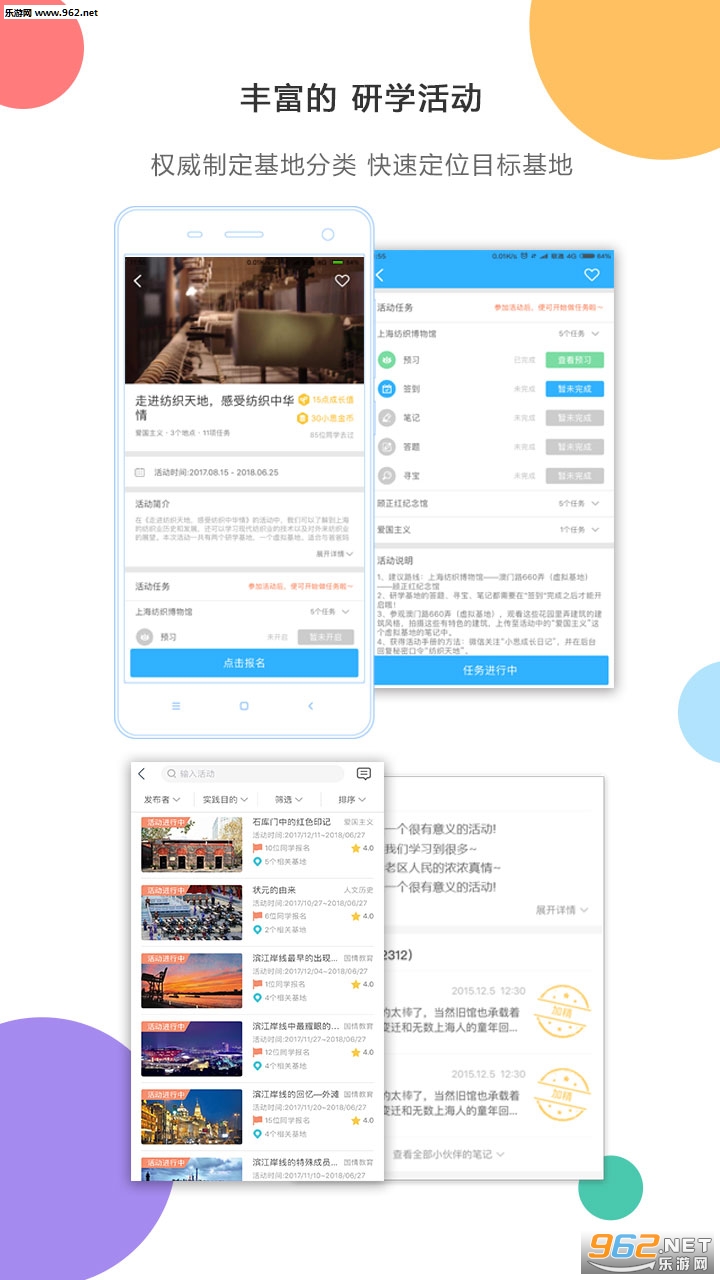 非常不错的研学助手,可以帮助学生记录研学的过程,可以进行签到等,丰富学生的研学之路,有需要的朋友可以下载试试。