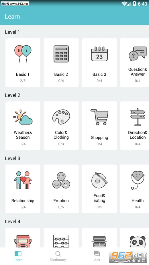 《学习汉语Pandarow安卓版》(Learn Chinese Pandarow)是一款为朋友们打造的汉语学习软件,汉语是一种非常难学的语言,国外的朋友想要学习汉语需要长期的练习和积累,本款软件中有着一些基础的汉字学习,让你能够在常见的场合能够对上话。