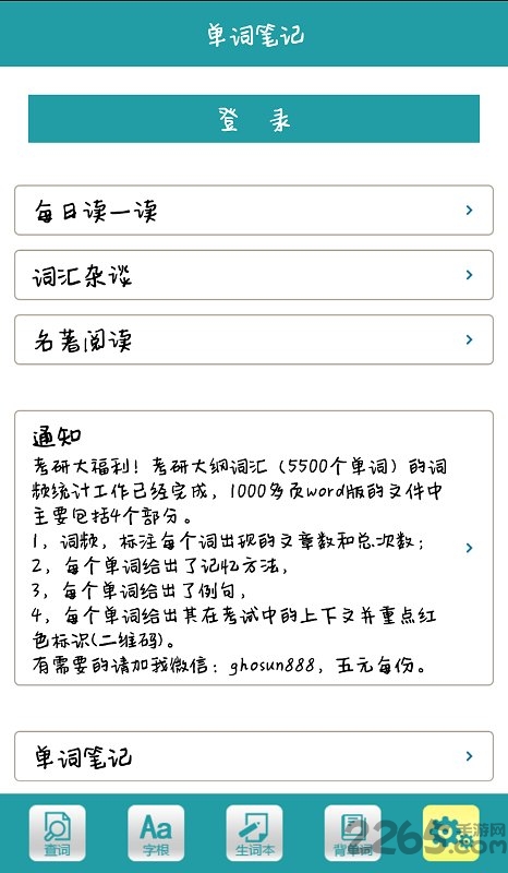 词根词缀字典手机版是一款专为四六级和考研的朋友打造的专业查漏补缺学习app,通过独特的记忆方式和举一反三的学习方式,让你可以更加方便的记忆单词,收录最常用的考试词汇重点记忆,感兴趣的朋友快来2265安卓网点击下载吧!