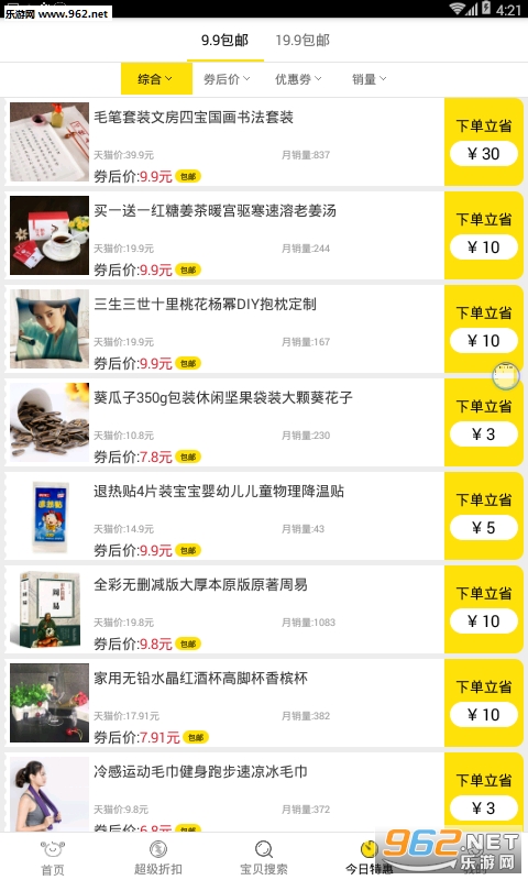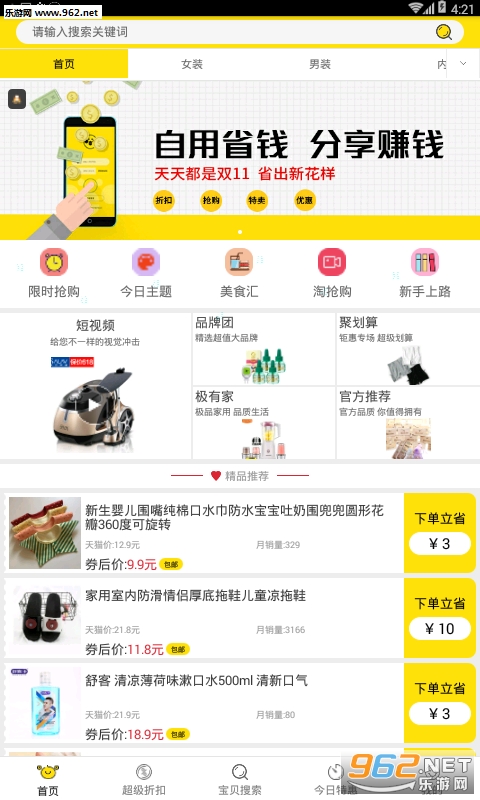 4、9块9包邮:精选商品,低价超值,9块9包邮还返利