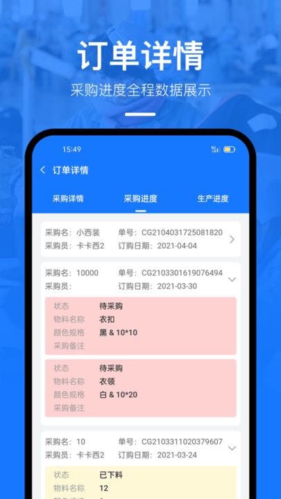 2.打造服装企业全程一体化管理体系,实现销售、客户、开发、采购、物料、生产、跟单、库存、人资、财务、办公等所有环节全程无缝管理