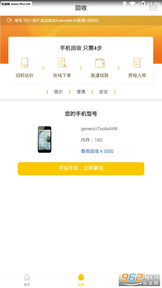 非常不错的手机回收软件,手机更新换代是非常快的,有时我们有些二手手机放着就浪费了,可以在本款软件中出售,可以智能估价,有需要的朋友可以下载试试。