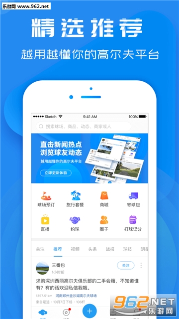 专门为高尔夫运动爱好者打造的APP,无论是看资讯和直播,还是预订球场、购买装备,或者组织比赛,都可以满足你的需求,让你享受高尔夫运动的乐趣!
