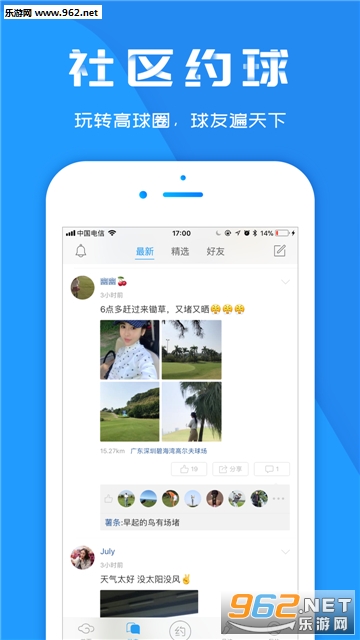 3、社区交友:最大的高尔夫交流社区,每天数万高尔夫球友交流畅谈,美女如云。来云高,球友遍天下!