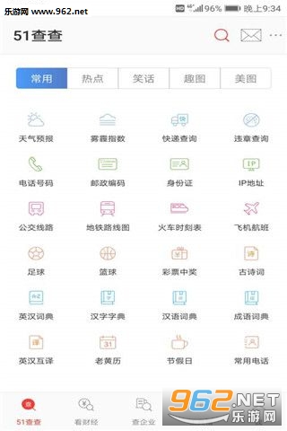 《51查查最新版》是一款生活查询助手软件,包含以下几大内容,日常生活查询,股票财经,企业信息,导航,资讯等方面,涵盖的内容比较广泛,用户可以使用这款软件来查询你想要查询的内容,使用起来也很简单方便。