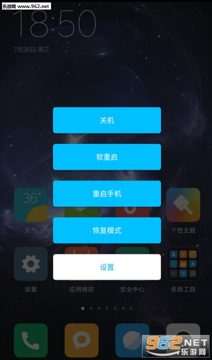 高级重启,高级工具,支持关机,快速重启,重启手机,重启至恢复模式(即Recovery模式。刷机模式),重启至引导模式(即Fastboot模式),重启至安全模式,重启系统用户界面,锁屏。简约界面,美在其中,内置2种风格,不同体验!