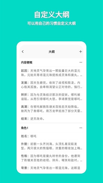 3.大纲为人物、故事主线、辅助线之类的自定义结构存储