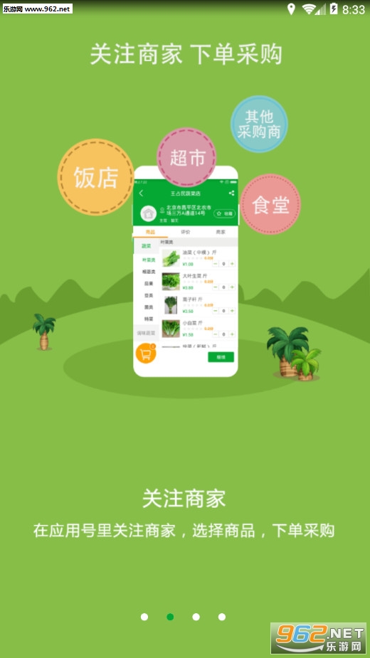 1、关注商家,下单采购:在应用里关注商家,选择商品,下单采购,