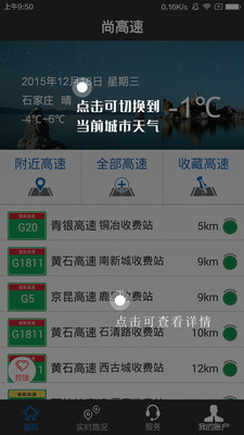 1、天气、高速通行、收费站开闭信息全掌握,出行提前规划;