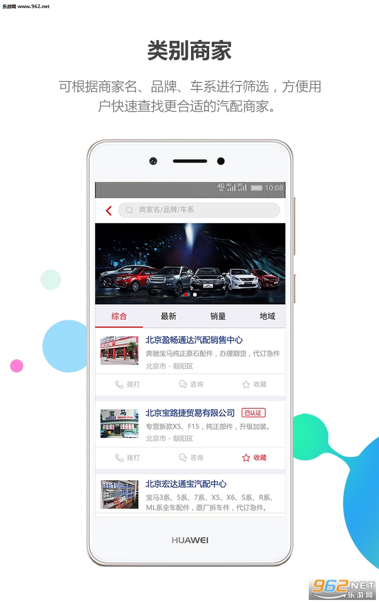 可根据商家名,品牌,车系进行筛选,方便用户快速查找更合适的汽配商加