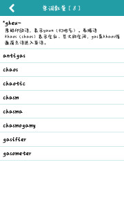 词根词缀记忆字典是一款专门查询单词记忆法的字典。词根、词缀、词源,口诀、谐音、谐音、对照、看图背单词等等应有尽有!软件总结了千余条词根和近万条包含词根的单词。并引入正向和反向索引,方便举一反三式查询。
