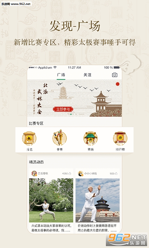 全民太极app是一款随时随地修炼太极功法的软件平台。全民太极app根据研究太极拳运动可以加强心血管功能、延缓老化速度, 并降低中风和罹患心血管疾病的风险。