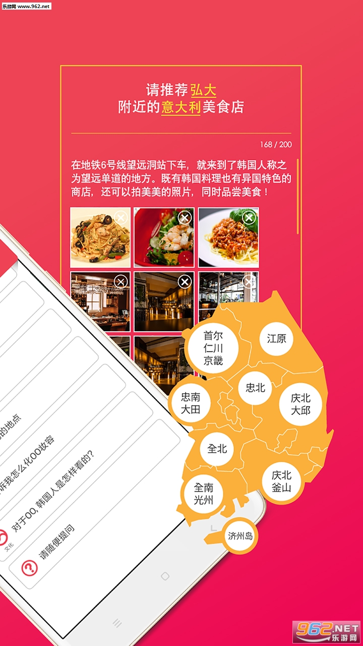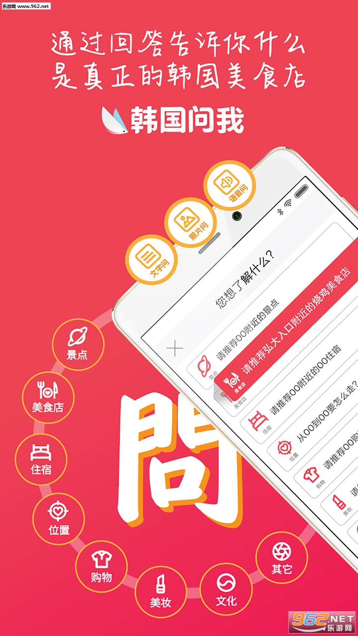 《韩国问我app》上留下所有跟韩国旅游(美食,景点,购物,翻译,住宿,交通,美妆等等)相关的问题后,让韩国在当地人肢解为你解答!目前已经有超过2000个提问了!