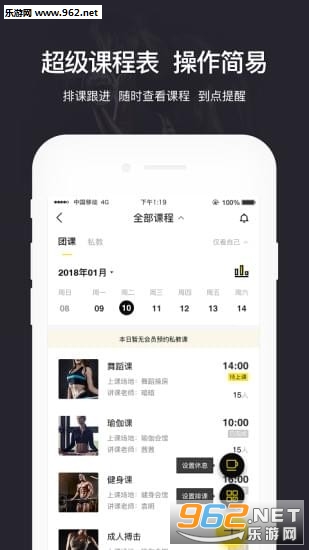 排课跟进可以更直观的查看*近您的课程安排,随时查看团课/私教课程。会员约课,支持自助约课和教练代约。