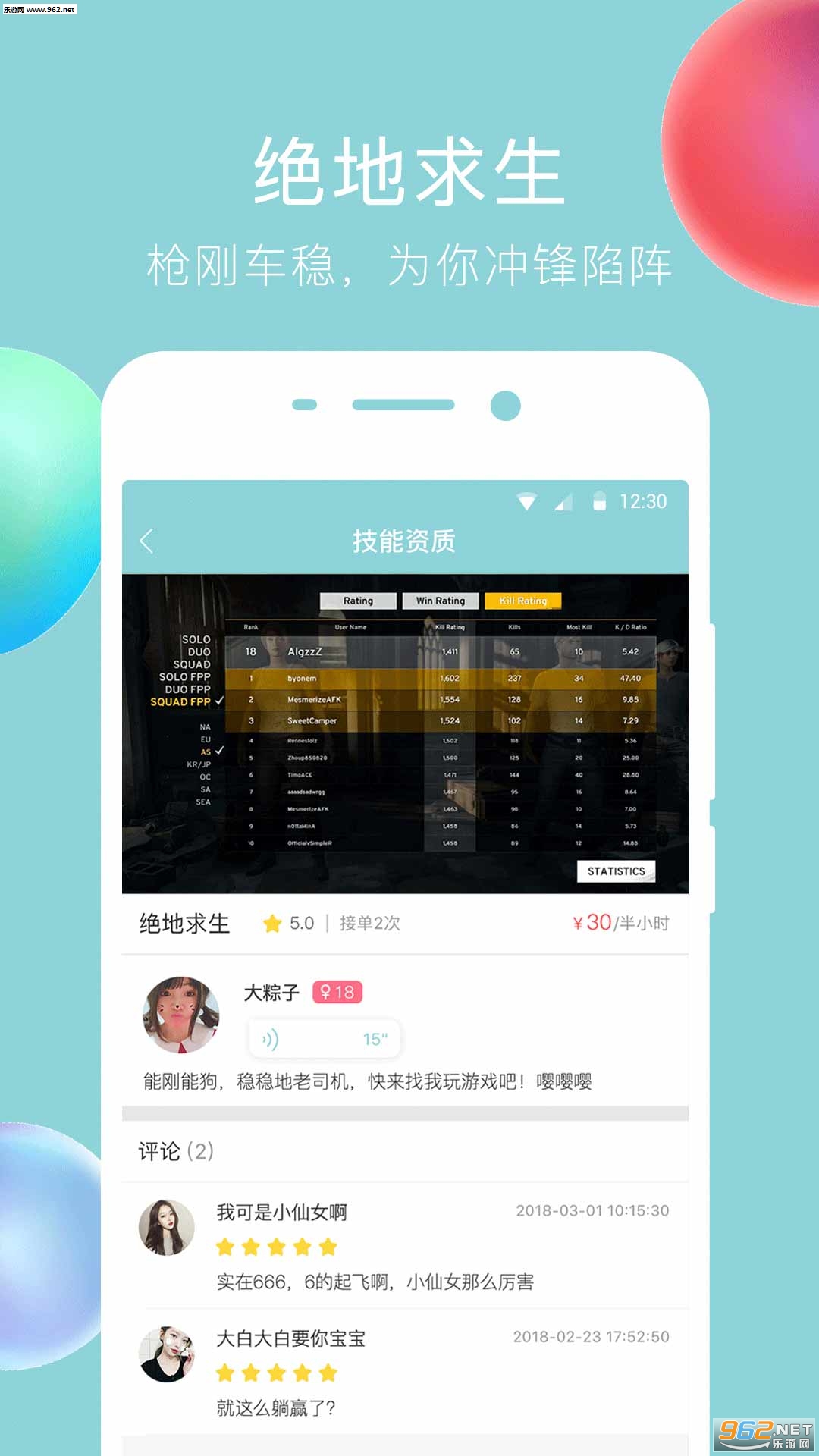 《闲来鱼丸app》是一款提供技能约玩的平台。提供声优聊天、游戏陪练等技能服务,带给你更多欢乐。
