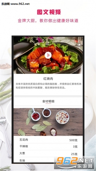 上传你的美食照片,分享你的美食体验,更有名厨与您互动交流心得提升厨艺。