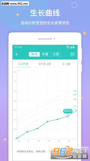 想要时刻跟踪记录宝宝的生长发育状态?用棒米生长发育仪吧。只需简单的测量,数据就可以自动上传到app,同时将自动生成专业的生长曲线,分析宝宝的生长状态。此外,app提供包括身高体重、进食、睡眠等的记录功能。