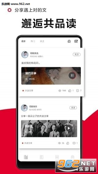 「共读」一起分享作品遇上对的文,好文总不能藏着,分享才是最大的传递。让分享变得更有意义。