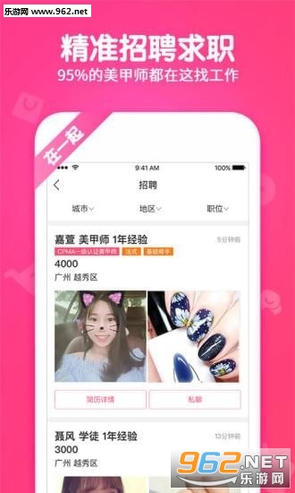 这款软件绝对是喜欢美甲的妹子们的好帮手,在上面不仅可以找到打牌的美甲店,还可以团购享受更高的优惠,如果你是一位想要自己DIY的美女,软件上还会有大师教导美甲课程,你可以进行预约,学习基础知识之后,尝试自己给自己美甲DIY,绝对是一款又实用又好玩的app,想要美美哒的妹子们赶快下载吧。
