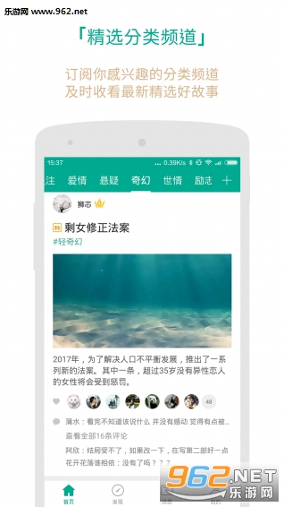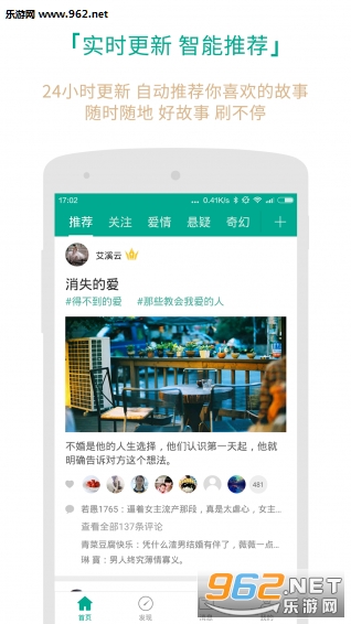 智能推荐引擎,自动识别你的兴趣,24小时滚动更新好故事;