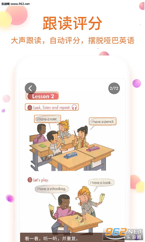 专门为小学生打造的英语学习软件。海量的教材和辅导资源,随时随地可以学英语。而且还支持点读功能,发音纯正,图文并茂,更好地辅助儿童英语学习成长。