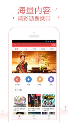 国内音质最好,内容最全最省流量的全免费手机电台收音机.随走随听的手机电台,你想要的中国好声音,尽在考拉FM手机电台!