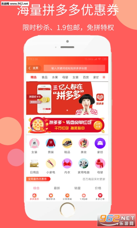 2、海量拼多多优惠券,限时秒杀、1.9包邮,免拼特权。
