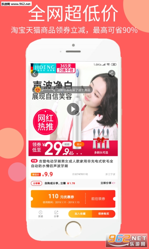 1、全网超低价,淘宝天猫商品领券立减,最高可省90%。