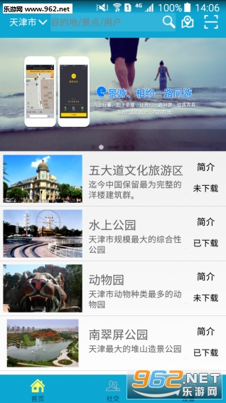 景区选择:按地区景区列表显示和按百度地图景区位置显示,有景区简介,可下载景区资源。