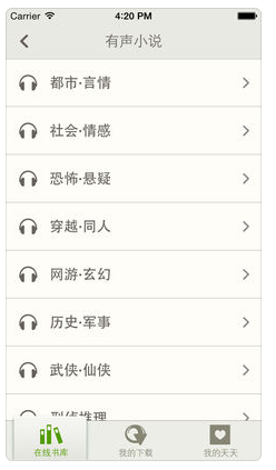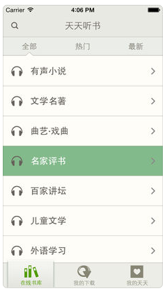 3.下载收听:懒人听书上所有的书籍节目都可以免费下载收听,有wifi时把书籍下载到手机,在旅行途中、上下班路上随时随地想听就听。