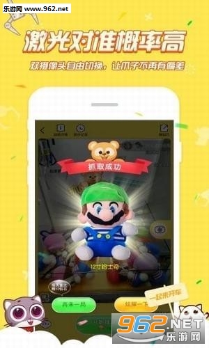 娃娃机达人app远程利用摄像头进行操控机器来抓取玩具。玩家进入游戏房间(选择机器),游戏开始后,可根据不同角度的摄像头,操控“上、下、左、右”按键来移动抓头以便更精准的抓取玩具。