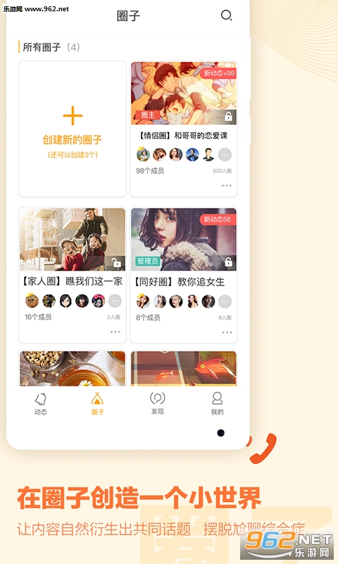 在一面上,你可以创建各种类型的主题,和家人、恋人、朋友、同事、同学、邻居、同伴等一起订阅专属信息。