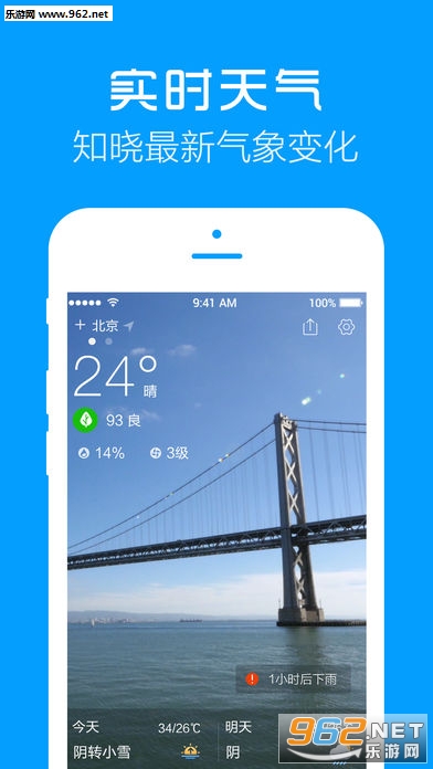 为您提供最准确的实时天气,空气质量、更有未来24小时,未来15天天气预报。覆盖全国3000多个城市,数据来源准确可靠,让您放心出门,做天气,我们很用心。