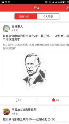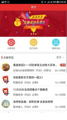 可以发布文章,结交股友,随时分享大量的炒股消息。每天股神大咖们提供优质的内容,包括行业热点文章,个股文章,和各种炒股的理论文章。平台定期举行线下培训,帮助股民更快更好的学习了解股票技能及行情,是股民炒股的必备神器。