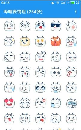 哔哩表情包app无需联网,支持保存表情,QQ、、TIM一键发送,部分表情提取自Bilibili,部分表情来自于互联网,已包含253张,持续更新中,包含各种gif动图与小表情。