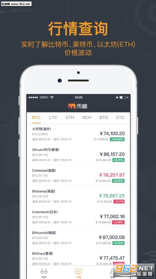[行情]轻松掌握数字货币实时行情,包含比特币、BCH、以太坊、莱特币等数十种货币,覆盖全球多家交易所