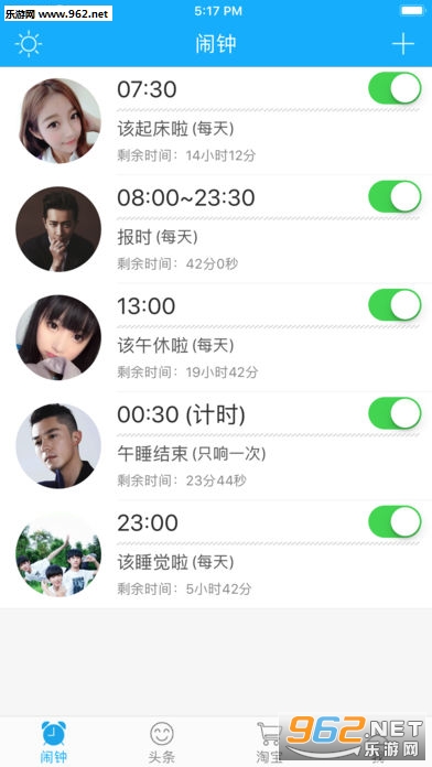操作方便,准时提醒。个性的懒人模式,智能节假日过滤,起床困难户的福音