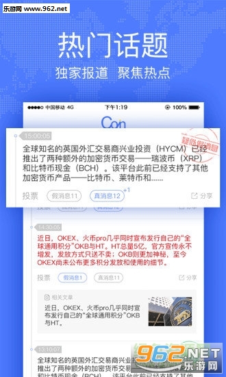 《有币网app》一款非常棒的手机软件,针对广大喜欢炒货币的朋友带来服务,不论是现实货币还是虚拟货币这里都有的炒,前提是你要懂这些东西,因为本软件知道来行情和交易数,其余的还要靠您自己了哦!