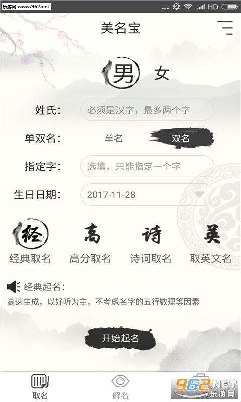 美名宝采用周易之道,为用户提供了海量好听又极具特色的好名字。在每个名字的背后都有其用字意义,它结合了五行及属相分析最后得出五格数理的分数,依次按照分数由高到低往下排列,方便用户进行选择。不管你是为宝宝起名、还是成年人改名,都可以使用美名宝app。