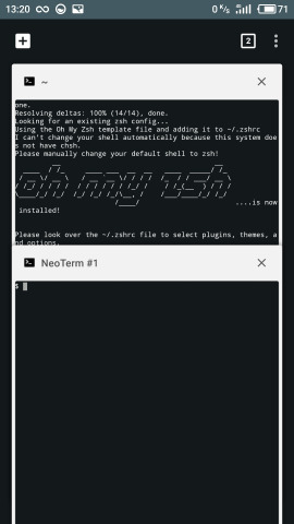 第一次启动时需要联网下载大约5M的文件用于基本环境的配置,配置成功则可以使用高级功能,配置失败可以使用基本终端功能(即 /system/bin/sh)