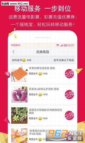 超多服务:充话费、看电影、买商品、。金币就能当钱花!