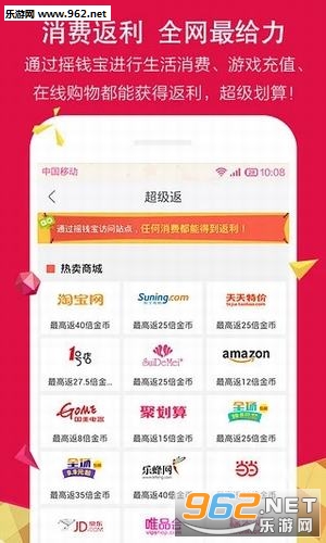摇钱宝app,注册就送话费,有钱任性!移动服务综合返利平台,游戏娱乐、网上购物、生活消费全都返利!话费流量、全国电影票、实物商品样样免费换。