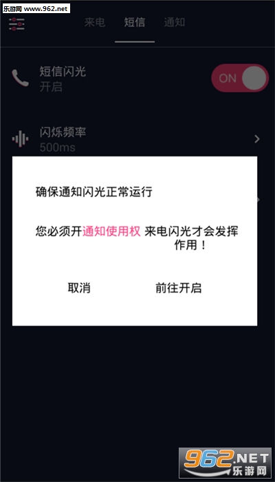 通知闪光,、QQ等来消息时,通知闪光灯进行提醒,还可自定义获取软件通知权限;