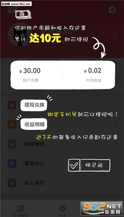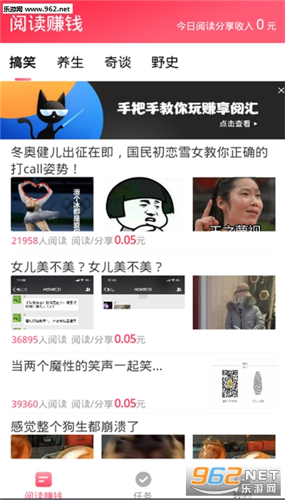 分享或阅读文章就能赚钱,任务中心做不停,红包兑换还是低额提出,根本停不下来!随时随地,想赚就赚!