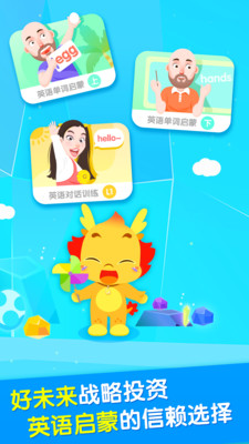 小伴龙与好未来(原“学而思”)联合打造,专业北美真人外教、海量英语启蒙内容、小伴龙趣味伴读,提高孩子学习英语的兴趣,让孩子爱学敢说英语!