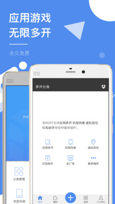 多开分身(应用多开、双开、应用分身、小号分身)支持一部手机轻松实现本地软件和游戏的多开、双开,免ROOT支持虚拟定位、机型伪装、红包提醒等各种贴心功能。源自内核级技术、不占内存,快速稳定!商务、娱乐、游戏用户必备神器!