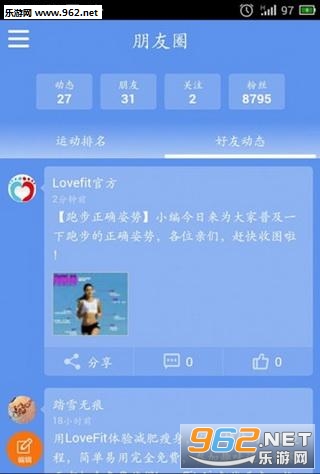 1、在运动圈实时与好友互动,了解好友的运动情况,成绩排行一目了然