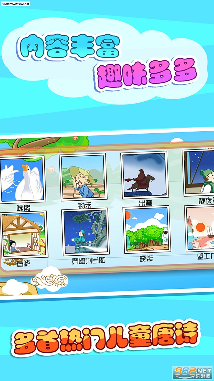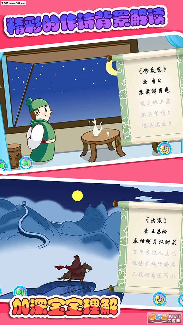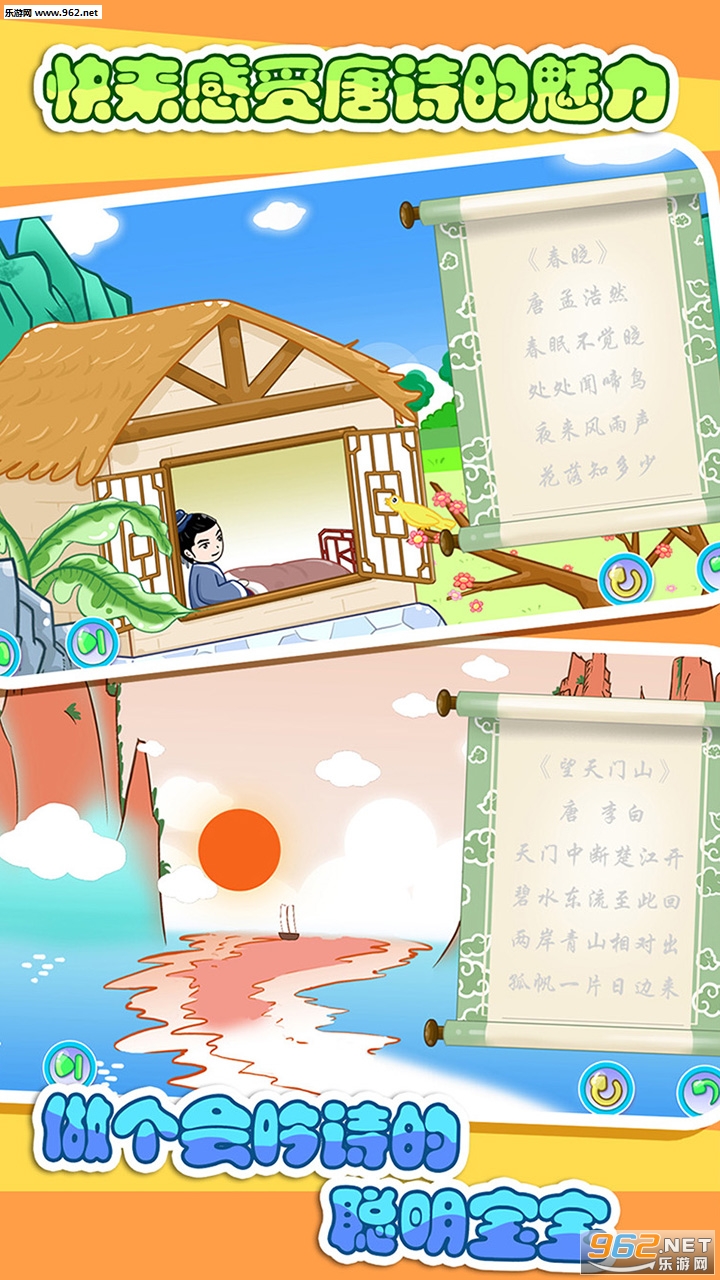 宝宝唐诗三百首精选儿童容易模仿学习的经典唐诗,通过精美的动画和好听的声音激发宝宝的兴趣,让您的宝宝快乐学唐诗。