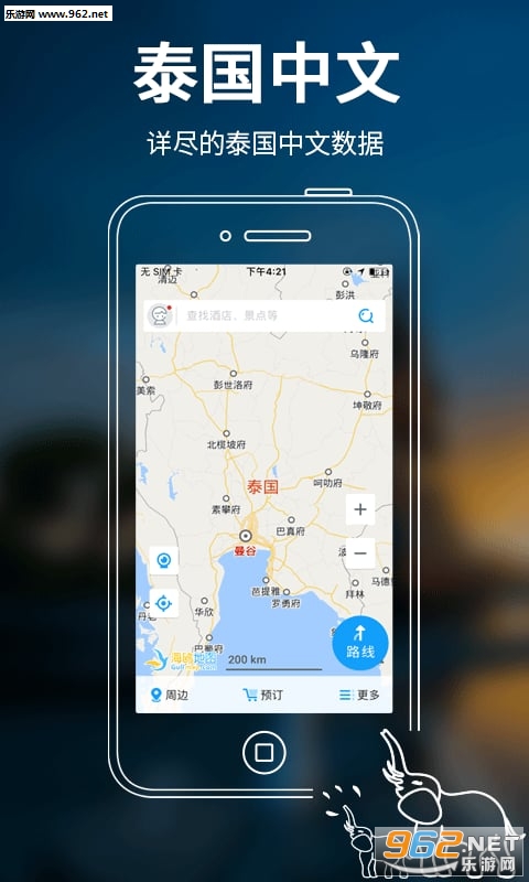 《泰国地图高清中文版》是一款地图导航类手机软件。专门为前往泰国旅行,留学的人士打造,用户可以在这个上面查找泰国各地的路线,还可以购票,导航,预订酒店,住宿,使用方便,更支持中英文,需要的小伙伴千万不要错过哦!