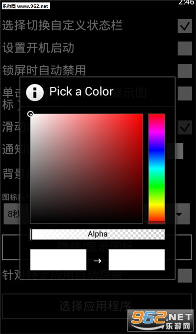 4.下面又是一项大家一定还会喜欢的强大功能哦,可以选择状态栏颜色,默认黑色,还提供了蓝色效果,最给力的是提供了“Custom”自定义颜色选项,想怎么调就怎么调,选择颜色就是这么任性。